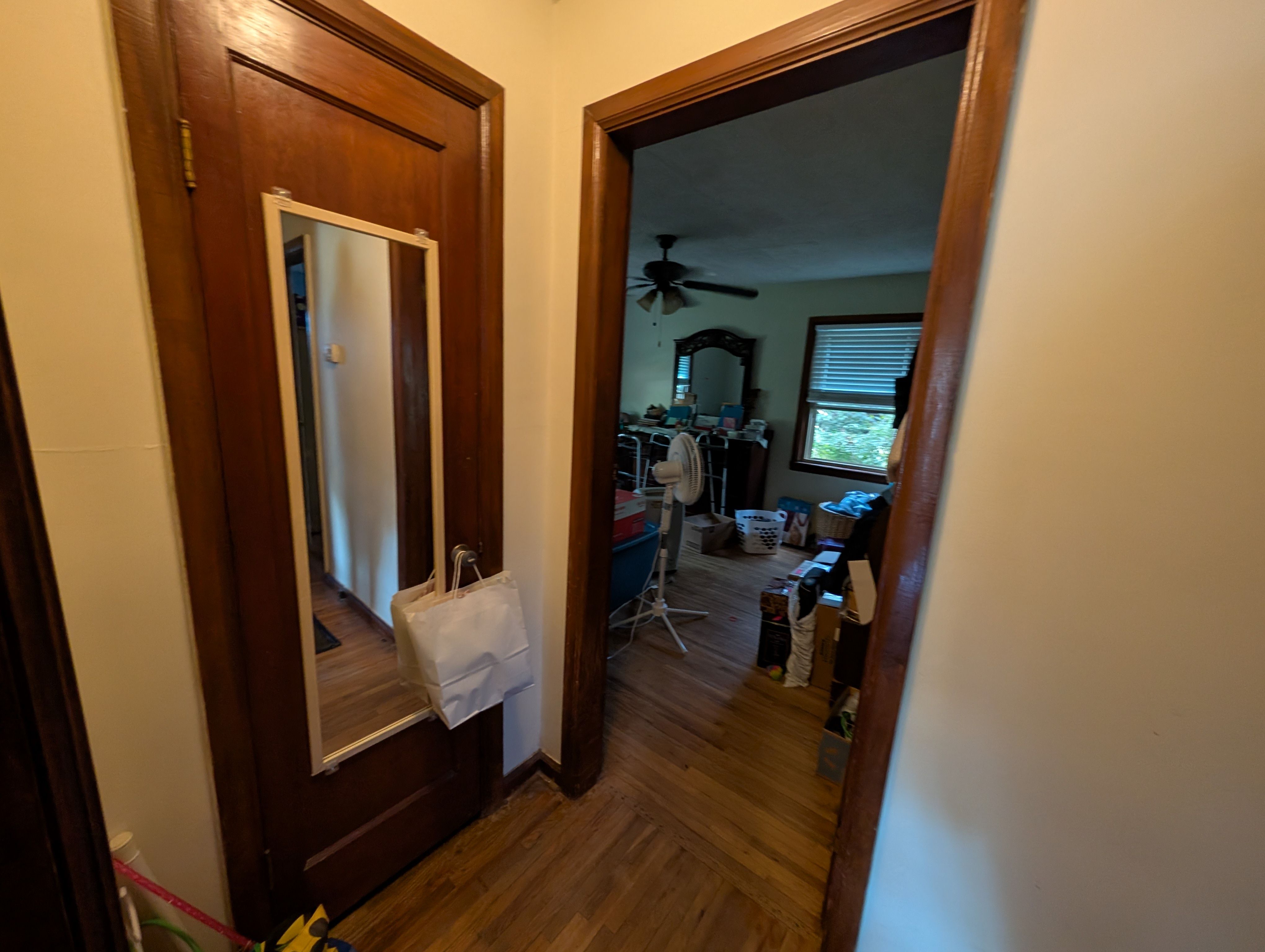Original hardwood floors would sparkle with a refinish. The spacious kitchen welcomes guests, and I really love the dual-entry living space. It feels charming and perfect for a Belvior cottage.
