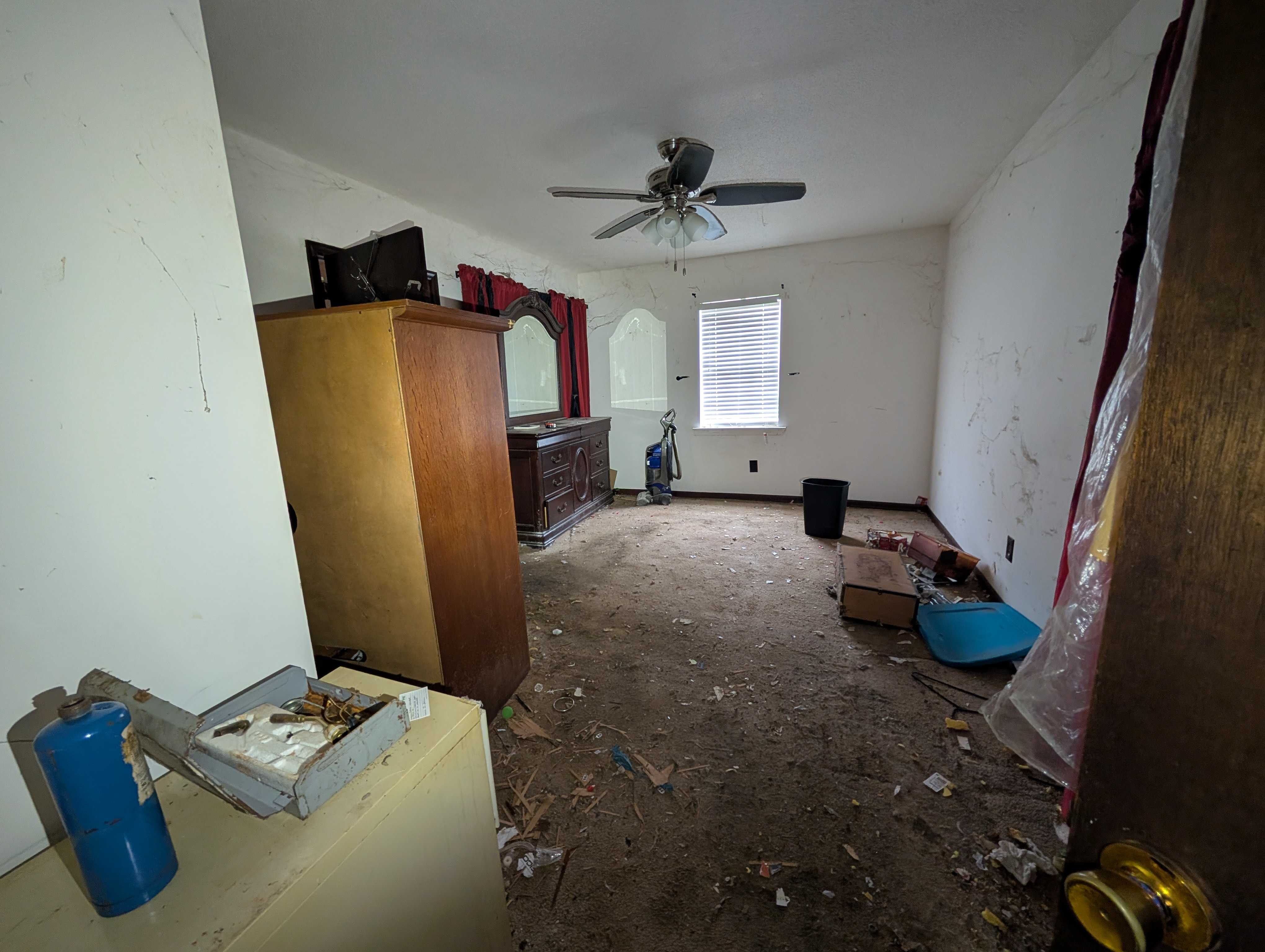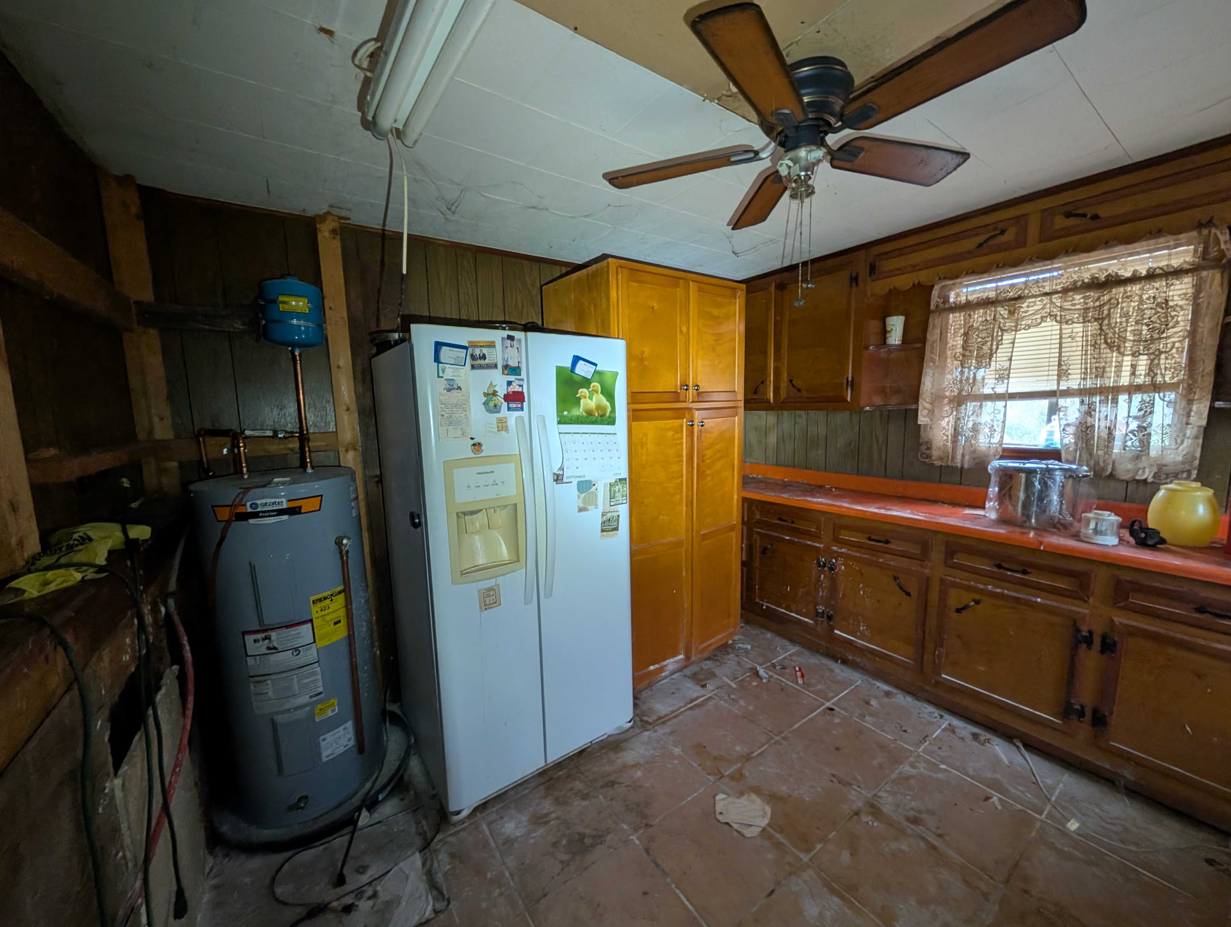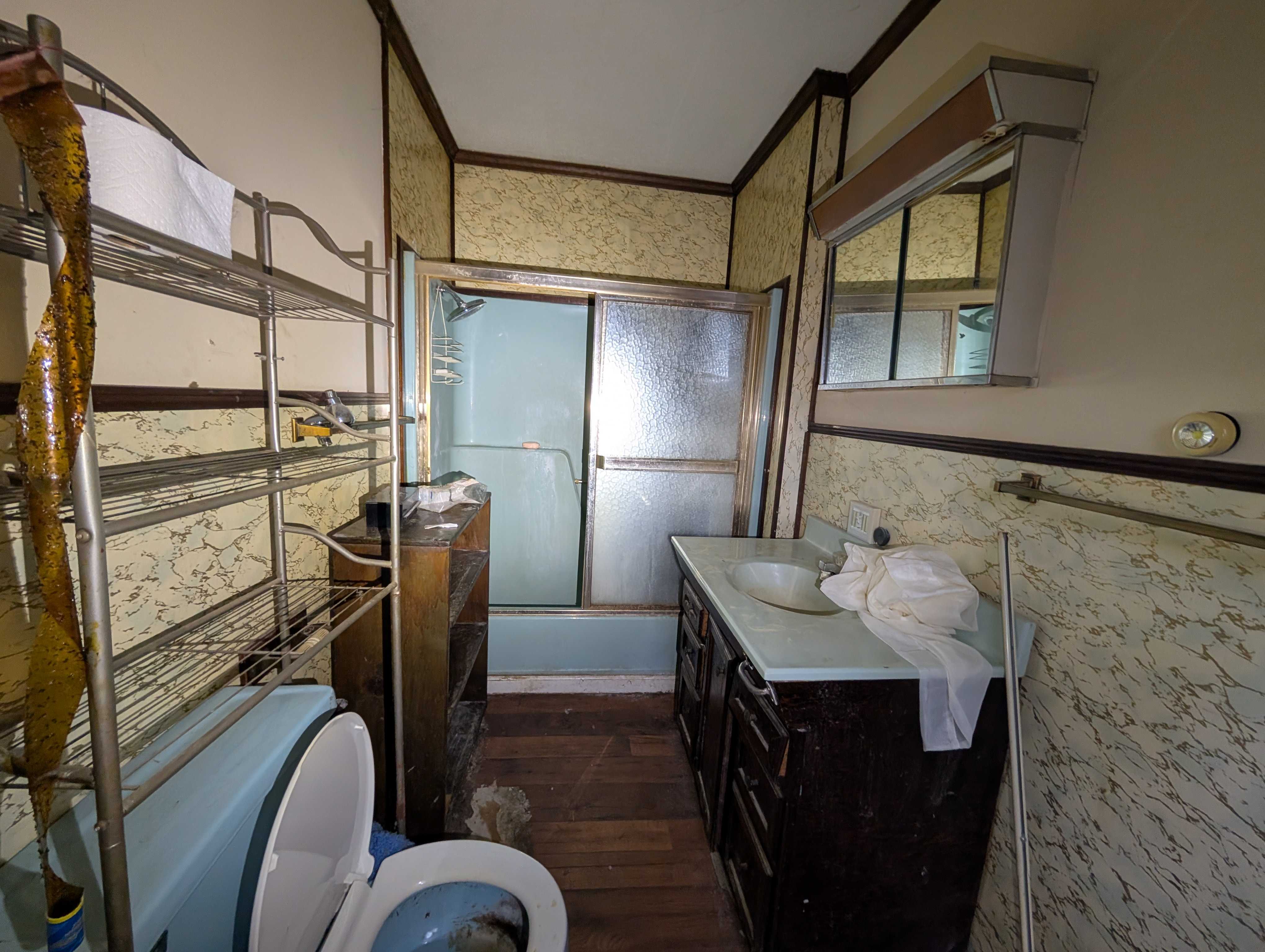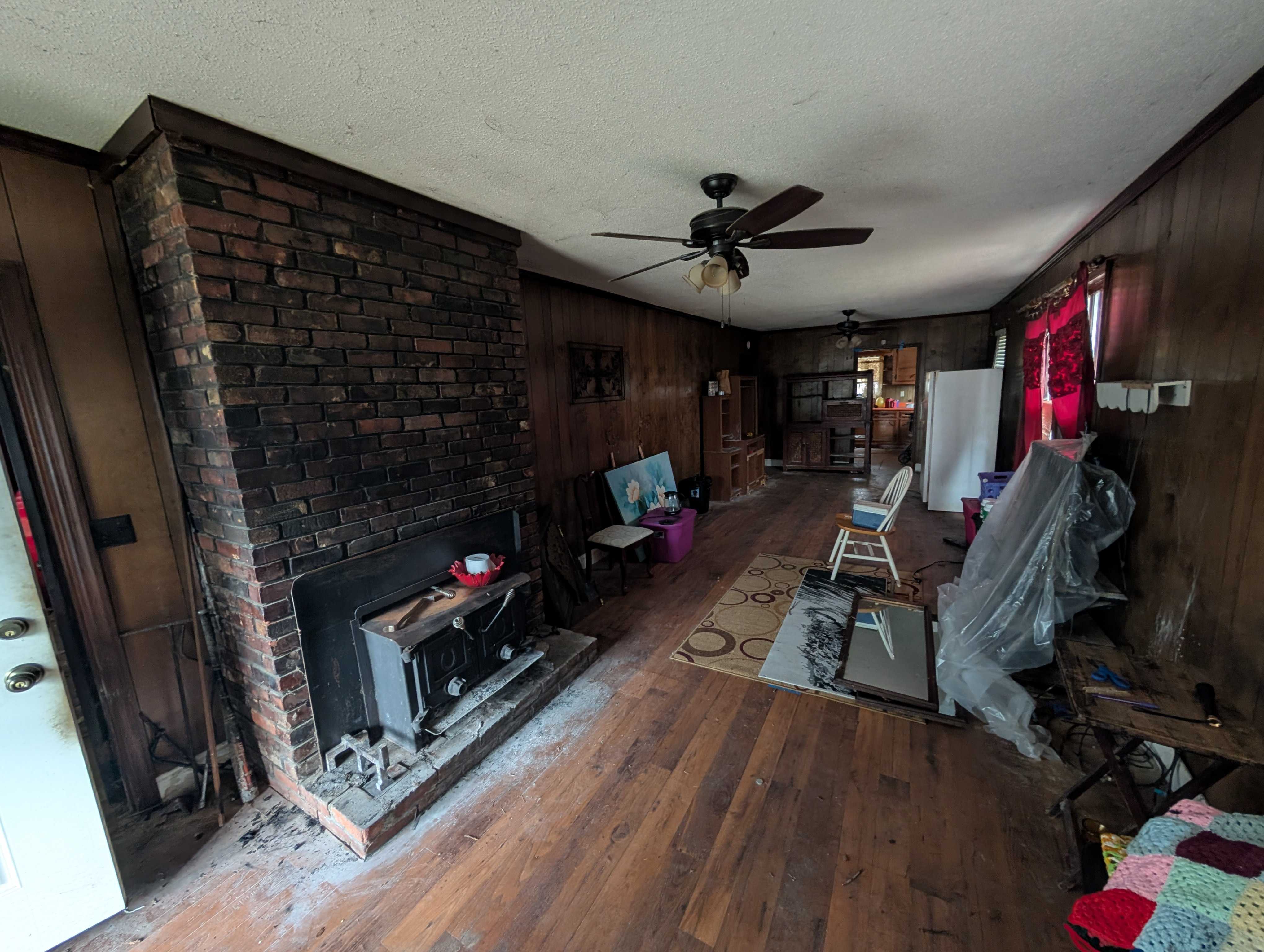 House has an appealing layout, with LOTS of living anc kitchen space down the right side. 3 bedrroms and (currently) one bathroom are on the left. But, room to easily modify that layout.